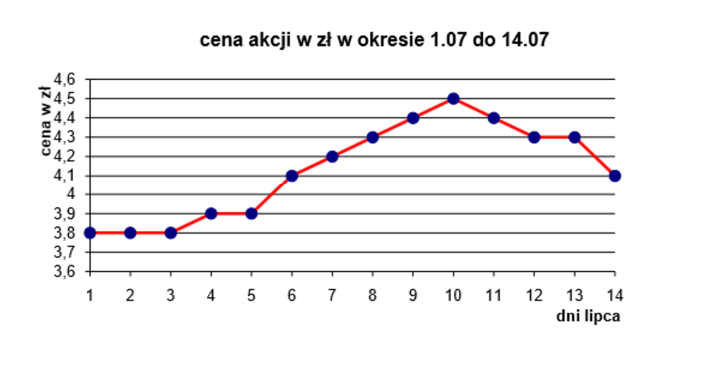 Wykres przedstawia zmiany ceny akcji pewnej firmy w pierwszych dwóch tygodniach lipca.
